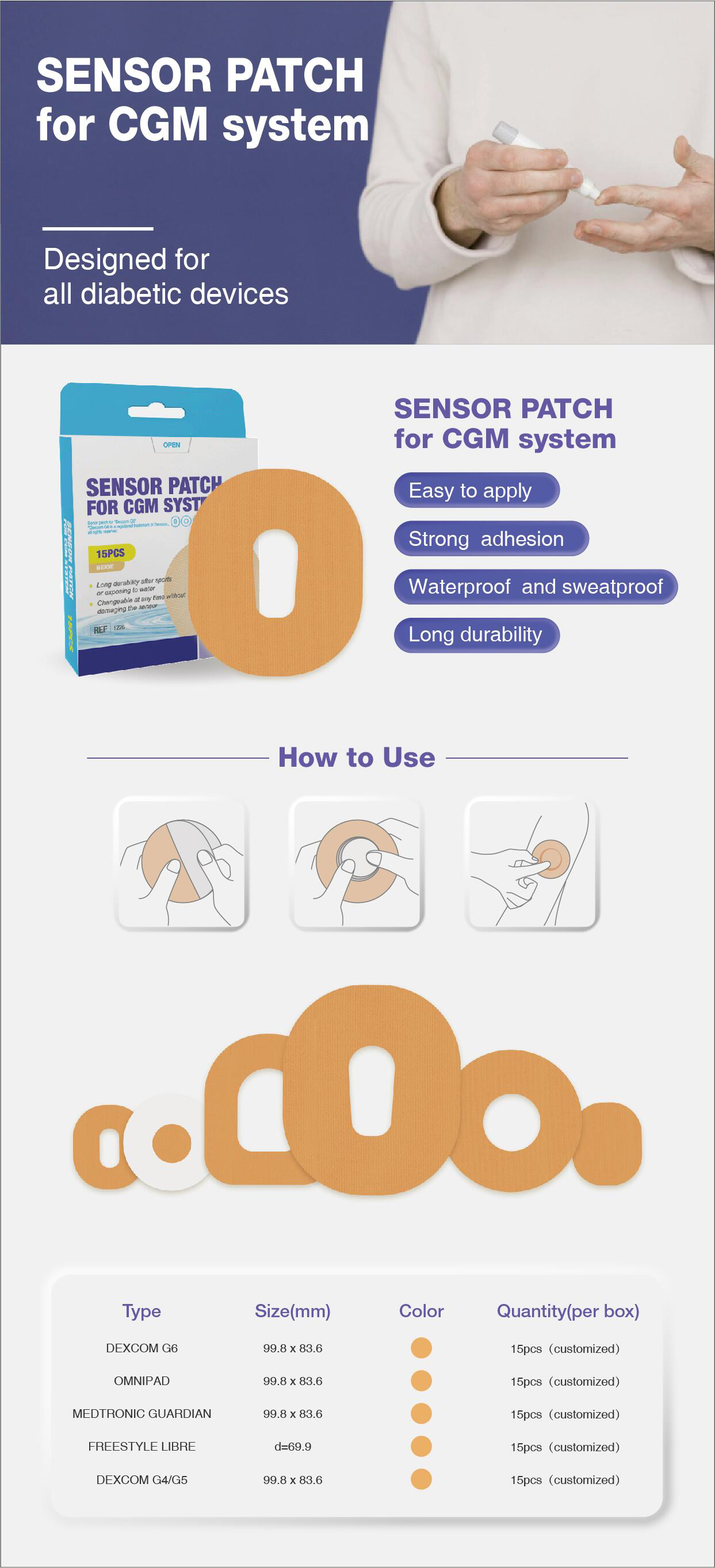 Als professioneller Hersteller medizinischer Klebepflaster liefern wir zuverlässige, wasserdichte und individuell anpassbare Dexcom-kompatible CGM-Fixierungspflaster (auch bekannt als Fixierungspflaster, medizinische Fixierungsverbände oder Haltepflaster) für Marken der Diabetespflege, Apothekenketten und internationale OEM-Distributoren weltweit.